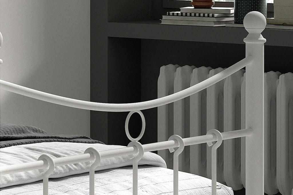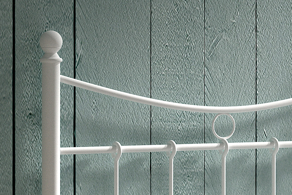 Het Sacha bed 90x200 combineert klassieke charme met eigentijdse eenvoud. Dit metalen eenpersoonsbed is uitgevoerd in een frisse, matte witte afwerking en voorzien van een sierlijk hoofd- en voetbord met elegante rondingen en spijlen. Dankzij het tijdloze ontwerp past het moeiteloos in zowel moderne als landelijke slaapkamers, kinderkamers of logeerkamers.