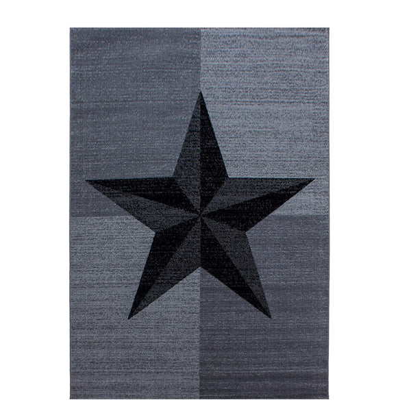 Zwart Grijs Vloerkleed met Ster Motief – Modern Tapijt voor Woonkamer en Slaapkamer