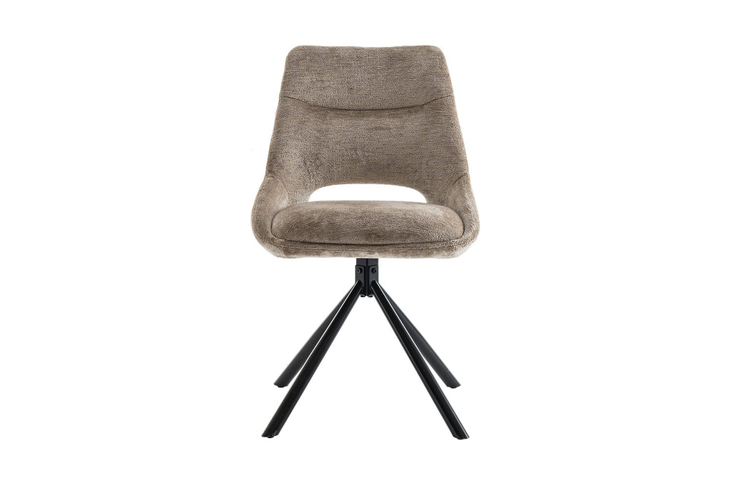 De eetkamerstoel DANTE in taupe stof straalt een warme en luxe uitstraling uit die perfect past in moderne en klassieke interieurs. De neutrale taupekleur combineert gemakkelijk met diverse stijlen en kleuren, waardoor de stoel veelzijdig inzetbaar is.
