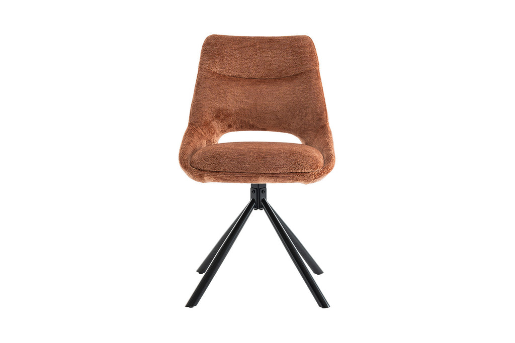De ergonomisch gevormde rugleuning en zachte bekleding bieden een optimaal zitcomfort, terwijl de opening tussen rug en zitting zorgt voor een luchtig en speels design. De stevige zwarte metalen poten maken de stoel extra stabiel en contrasteren mooi met de bronskleurige stof. De DANTE is perfect voor gezellige etentjes, lange avonden of comfortabel werken aan tafel.