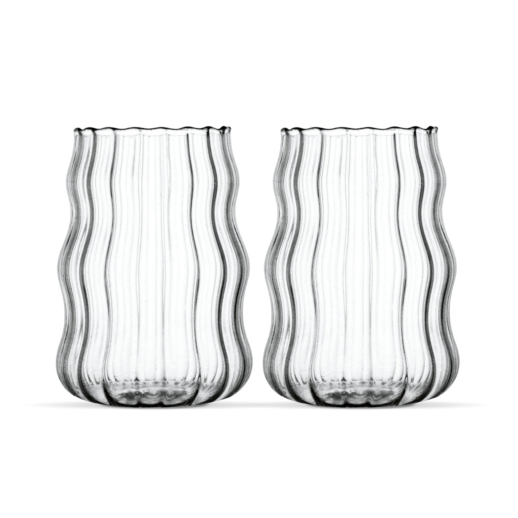 Geef jouw drankmoment een stijlvolle upgrade met deze Linea Wave glazen (530 ml). Het moderne, golvende design maakt elk drankje direct luxueus, of het nu gaat om latte macchiato, cappuccino, ijskoffie, cocktails, thee of frisdrank.