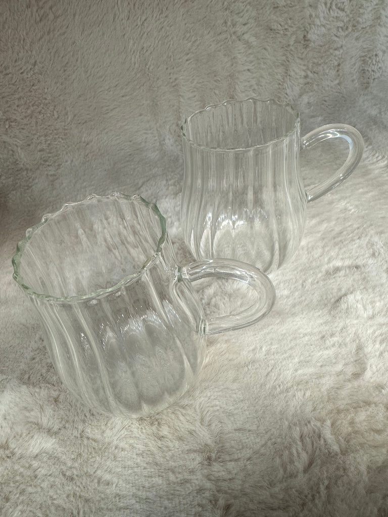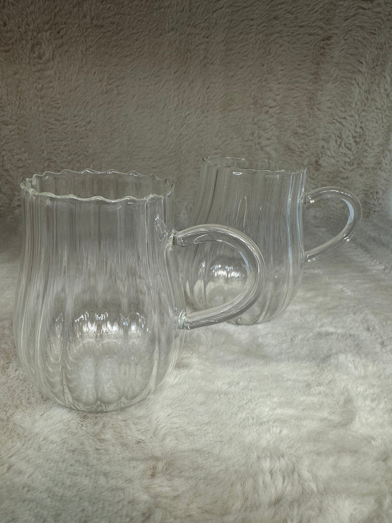 De Mulex Trendy Ribble glazen met handvat combineren stijlvol design met praktisch gebruiksgemak. Dankzij het elegante ribbelpatroon en het stevige handvat zijn deze glazen een echte eyecatcher op tafel. Ze zijn gemaakt van hoogwaardig borosilicaatglas, dat dun en licht is maar toch hittebestendig en duurzaam blijft. Hierdoor zijn ze geschikt voor zowel warme dranken zoals thee en koffie als voor koude dranken.