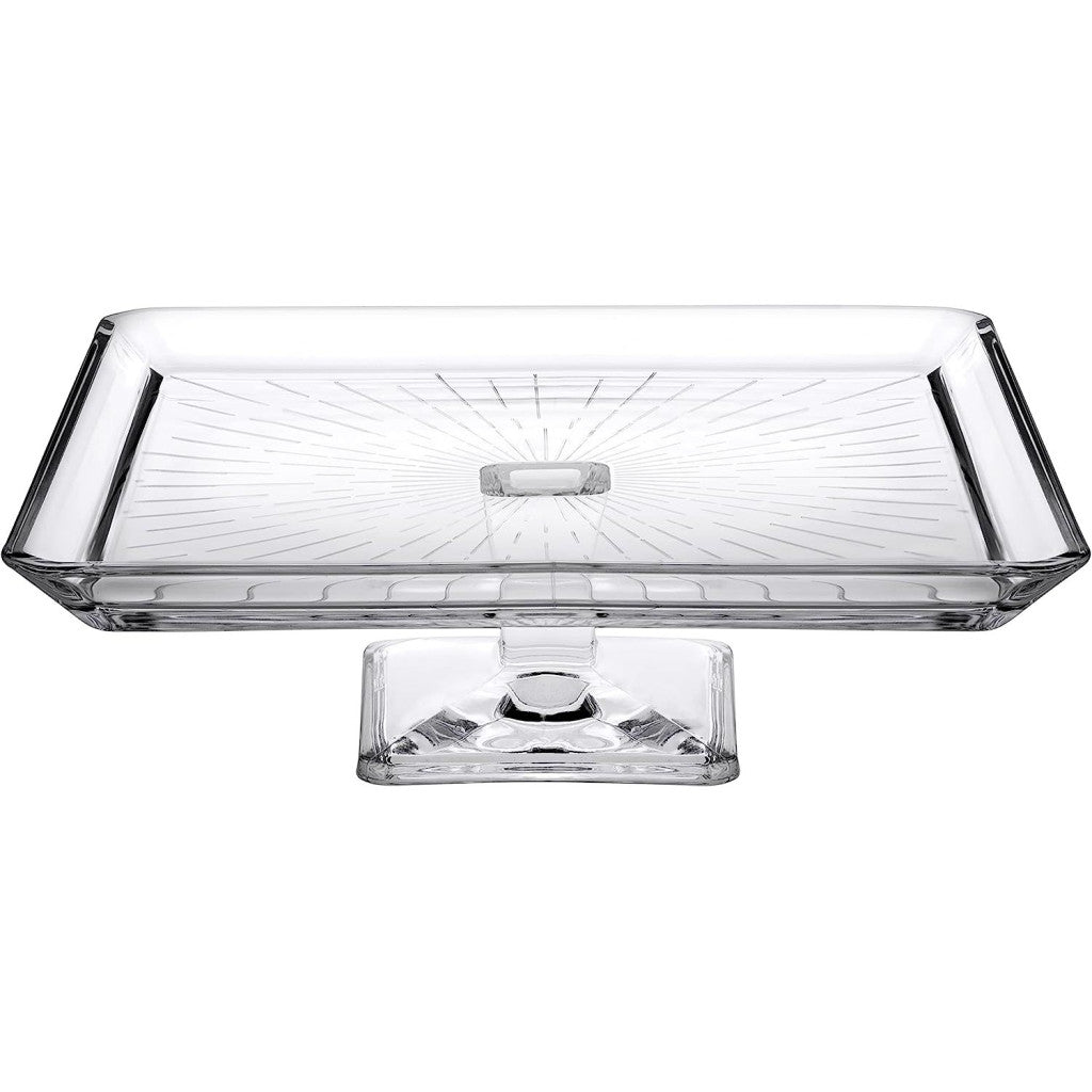 De Pasabahce Madlen serveerschaal is een elegante vierkante glazen schaal op voet, ideaal voor het serveren van taarten, gebak, hapjes of desserts. Met een afmeting van 23,8 x 23,8 cm en een hoogte van 7,8 cm biedt deze serveerschaal voldoende ruimte om je creaties stijlvol te presenteren.