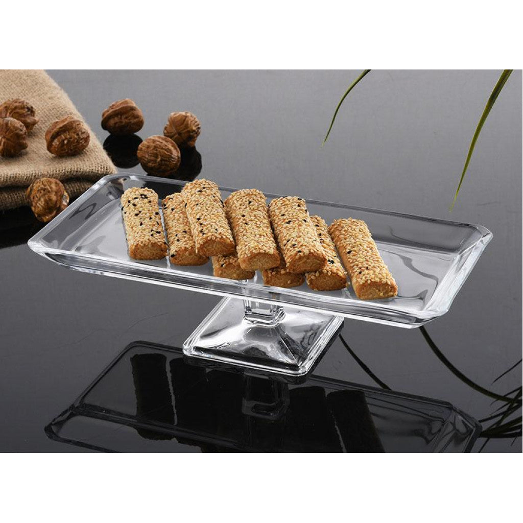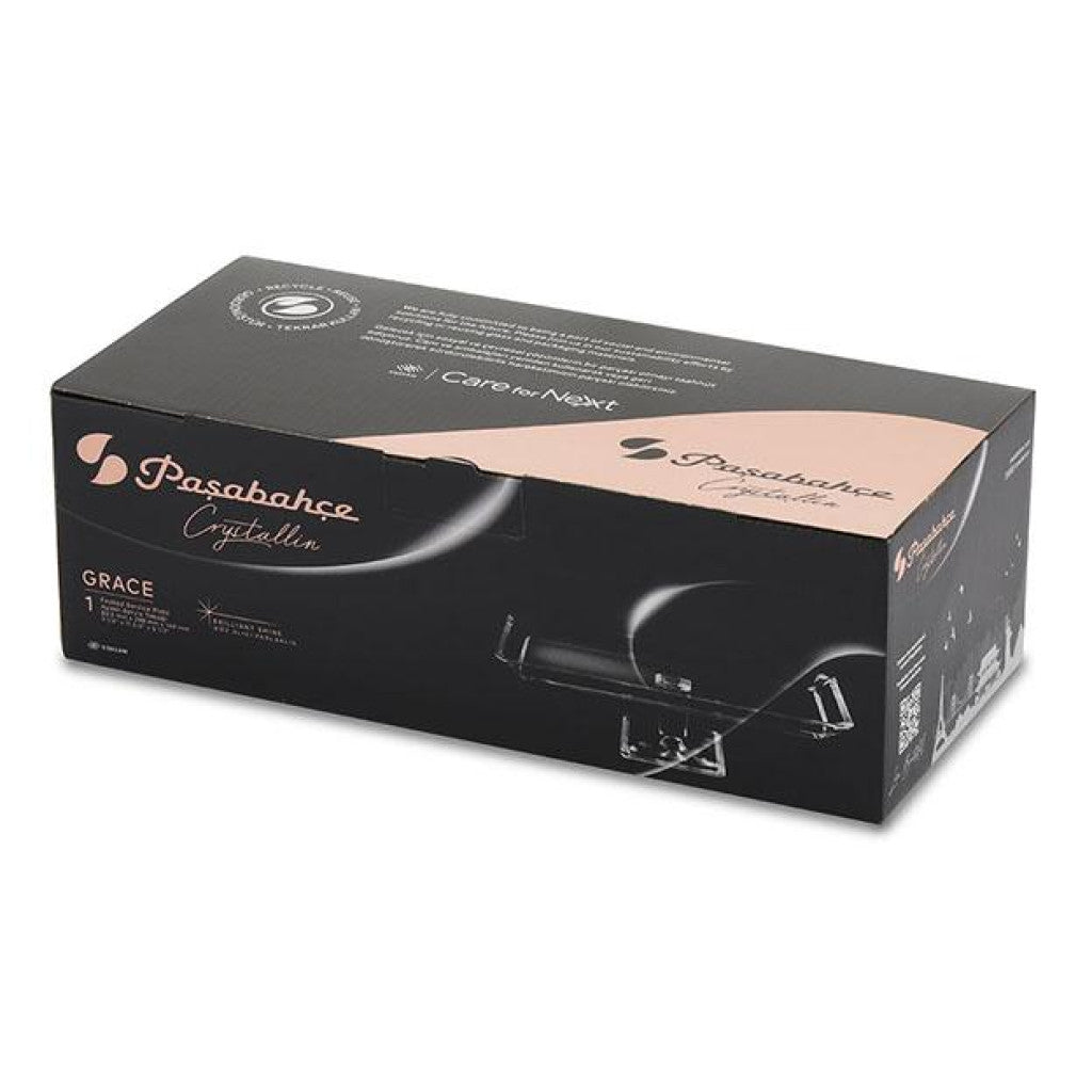 De Pasabahce Grace serveerschaal op voet is een elegante en moderne blikvanger voor elke tafelsetting. Deze rechthoekige glazen schaal combineert een slank design met tijdloze kwaliteit, waardoor hij perfect is voor het stijlvol presenteren van koekjes, zoetigheden, hartige hapjes of kleine desserts. Het verhoogde voetstuk geeft jouw gerechten niet alleen een luxe uitstraling, maar zorgt ook voor een stabiele en praktische presentatie. Dankzij het heldere, hoogwaardige glas komt de inhoud prachtig tot zijn recht en blijft de schaal jarenlang mooi in gebruik. Of het nu voor een feestje, een high tea of dagelijks gebruik is, deze stijlvolle serveerschaal geeft elke tafel een verfijnde en professionele touch.