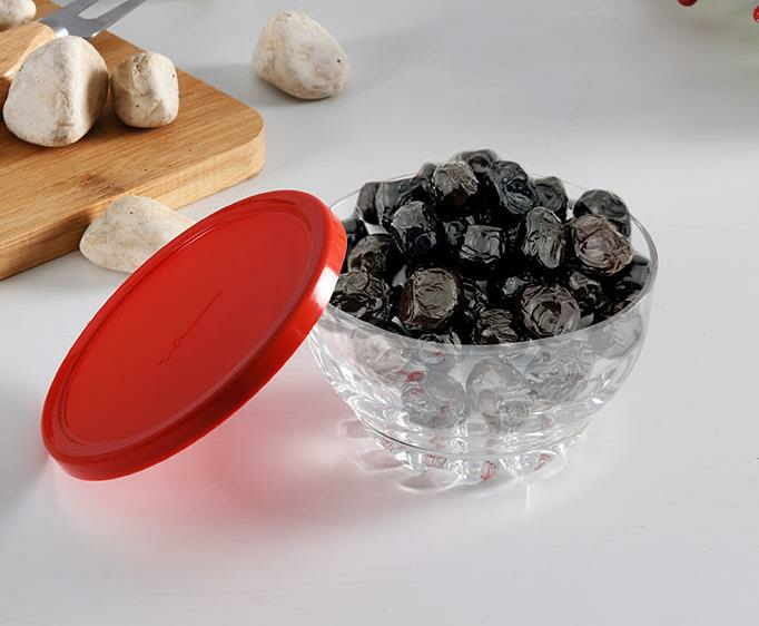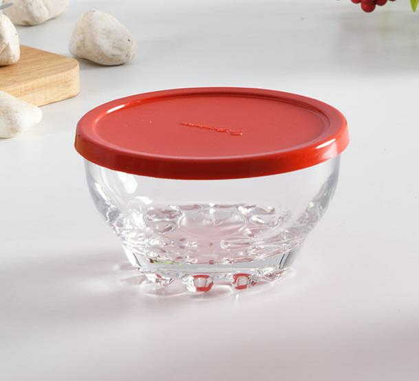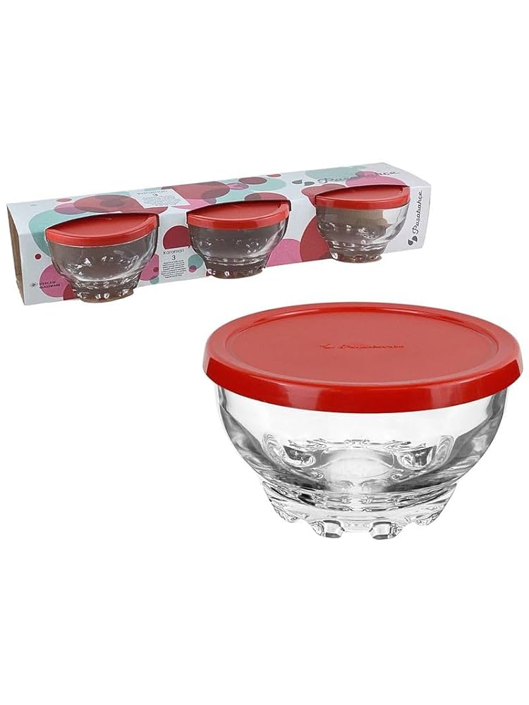 Pasabahce Karaman glazen vershoudkommetjes met rode deksel – set van 3 stuks 275 ml