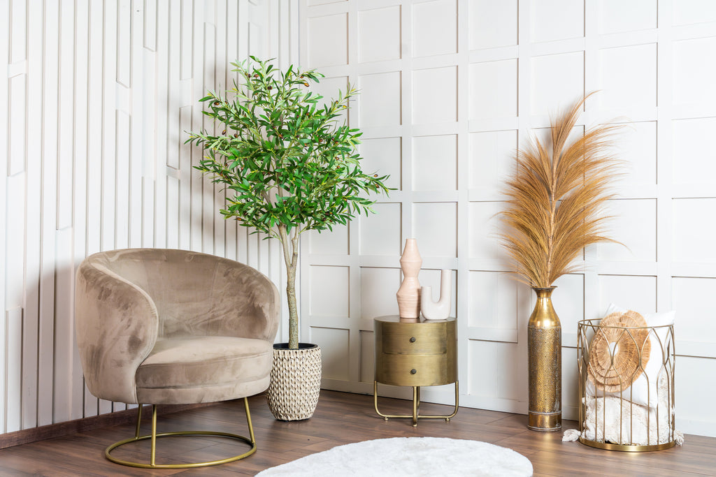 De stam en takken hebben een natuurgetrouwe structuur, waardoor hij bijna niet van echt te onderscheiden is. Dankzij de hoogwaardige afwerking blijft deze olijfboom kunstplant lang mooi in kleur en vorm — zonder water geven, snoeien of bladverlies.
