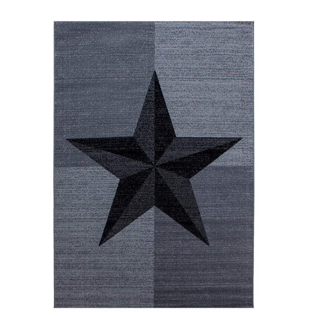 Het zwart grijze vloerkleed met ster motief is een echte blikvanger in ieder interieur. Het moderne design combineert strakke vlakken in verschillende grijstinten met een opvallende ster in het midden. Dit maakt het vloerkleed ideaal voor wie zijn woonkamer, slaapkamer of tienerkamer een eigentijdse en stoere uitstraling wil geven.