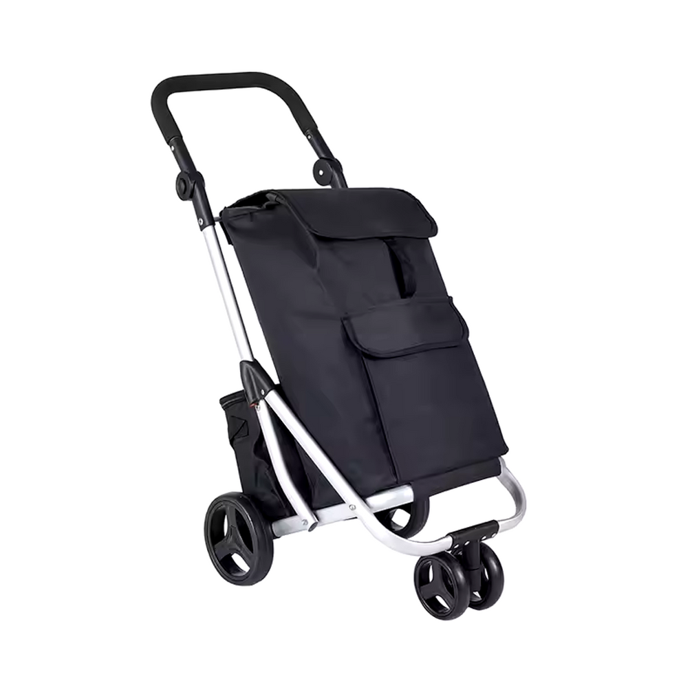 De wielen zijn voorzien van een rem en het dubbele 360 graden draaibare voorwiel maakt manoeuvreren moeiteloos, zelfs in smalle gangpaden of op ongelijke ondergronden. De ruime tas biedt voldoende opbergruimte voor al je boodschappen en is eenvoudig afneembaar voor reiniging.