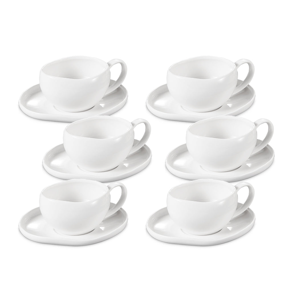 Deze elegante Curvy espressoset in helder wit is speciaal ontworpen voor liefhebbers van espresso en Turkse koffie. Het organische ontwerp met zachte, vloeiende lijnen geeft elk kopje een unieke vorm en zorgt voor een moderne, stijlvolle uitstraling op tafel. Met een inhoud van 120 ml zijn de kopjes perfect geschikt voor een volle espresso, Türk kahvesi of een kleine cappuccino. De bijpassende schotels hebben dezelfde speelse vormgeving en bieden voldoende ruimte voor een zoetigheid of een klein lepeltje. Dankzij de hoogwaardige afwerking voelt de set luxe aan en is hij zowel duurzaam als comfortabel in dagelijks gebruik. Deze 12-delige set is ideaal voor 6 personen en brengt een combinatie van elegantie, functionaliteit en tijdloos design in jouw koffiemoment.