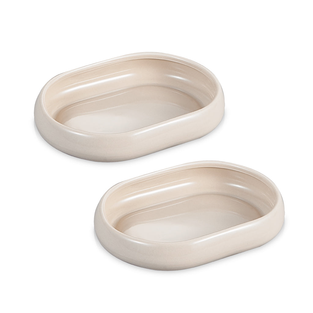 De Livenza Cosmo serveerschalenset brengt een stijlvolle en moderne touch naar elke gedekte tafel. De twee ovale schaaltjes zijn gemaakt van hoogwaardig keramiek en afgewerkt in een warme beige tint die moeiteloos past binnen elke interieur- en tafeldecoratie. Dankzij het compacte formaat van 14×10 cm zijn ze ideaal voor het serveren van tapas, dips, sausjes, snacks, olijven, nootjes of kleine gerechtjes tijdens ontbijt, borrel of diner. De zachte rondingen en strakke glans zorgen voor een luxe uitstraling, terwijl de stevige keramische kwaliteit prettig in gebruik blijft. Deze set is perfect voor wie functionaliteit wil combineren met elegant minimalistisch design en graag een verzorgd, harmonieus gedekte tafel presenteert.