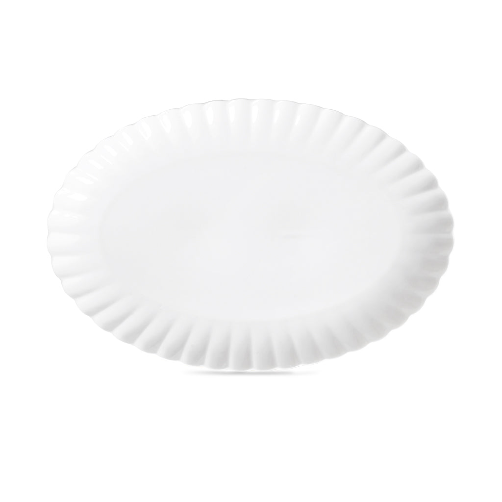 De set bestaat uit borden en kommen in verschillende formaten, aangevuld met een ovaal serveerbord en zout en peper houders. Dankzij het duurzame porselein blijft de kleur mooi helder wit en is het servies bestand tegen dagelijks gebruik.