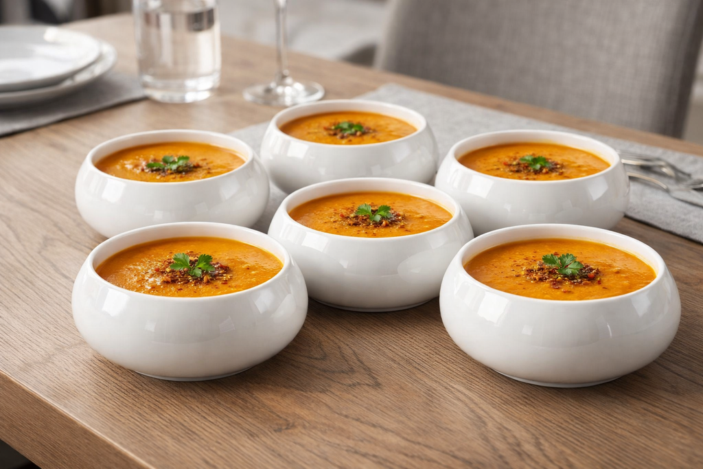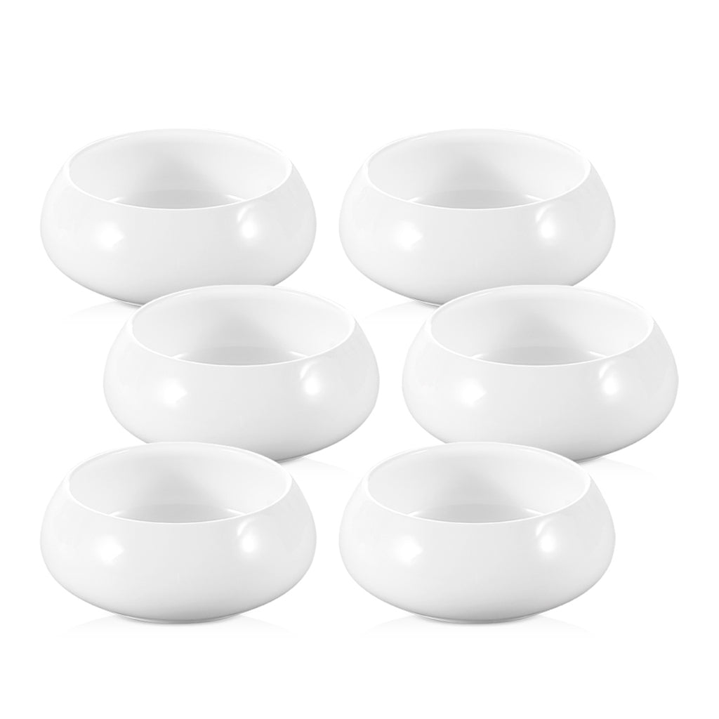 Met deze trendy chubby porseleinen kommen geef je elke tafel een moderne uitstraling. De ronde volle vorm voelt luxe aan en laat gerechten mooi uitkomen. Gebruik ze als soepkommen voor een royale portie of als snackkommen voor tapas bonbons en borrelhapjes. Door de afmeting van 14 cm diameter en 6 cm hoogte zijn ze groot genoeg voor soep en tegelijk compact genoeg om netjes te serveren. Het strakke witte porselein past bij elk servies en blijft een tijdloze keuze voor dagelijks gebruik en voor gasten. Je ontvangt een set van 6 porseleinen kommen zodat je in een keer compleet bent.