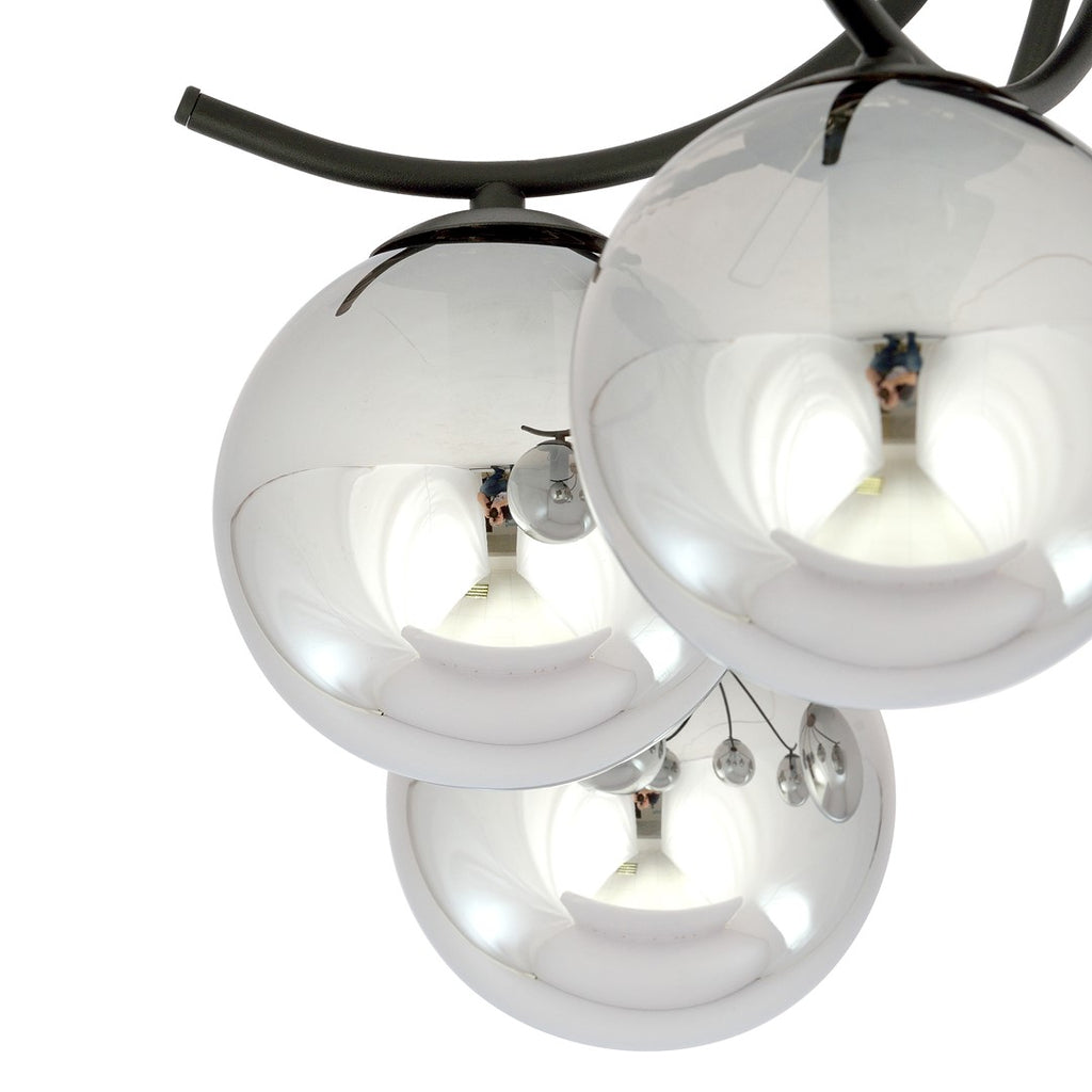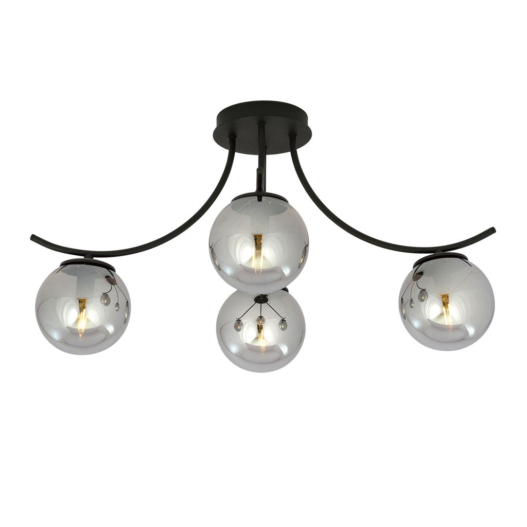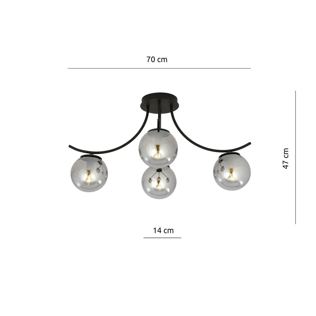 De BOSTON plafondlamp met 4 grafietkleurige glazen bollen en een stijlvol zwart frame is een moderne toevoeging aan elk interieur. Dankzij de transparant gerookte glazen bollen ontstaat een sfeervolle lichtverspreiding, ideaal voor woonkamers, gangen of slaapkamers.
